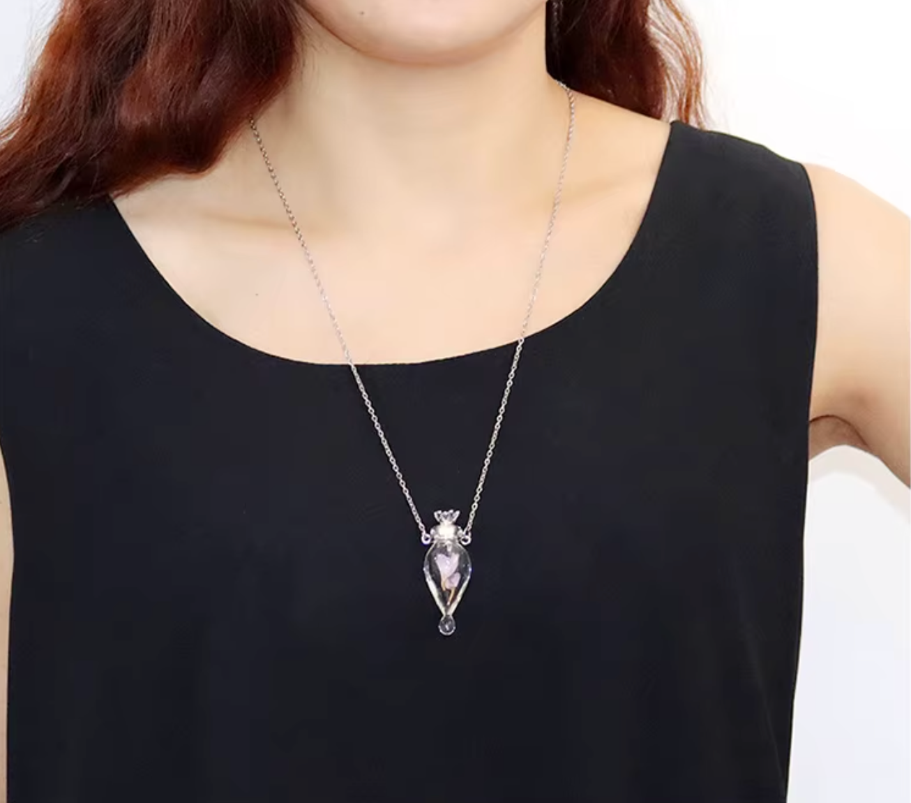 Elegancki naszyjnik z fiolka na perfumy. Wlej kilka kropel ulubionego zapachu i nos go blisko serca przez caly dzien.